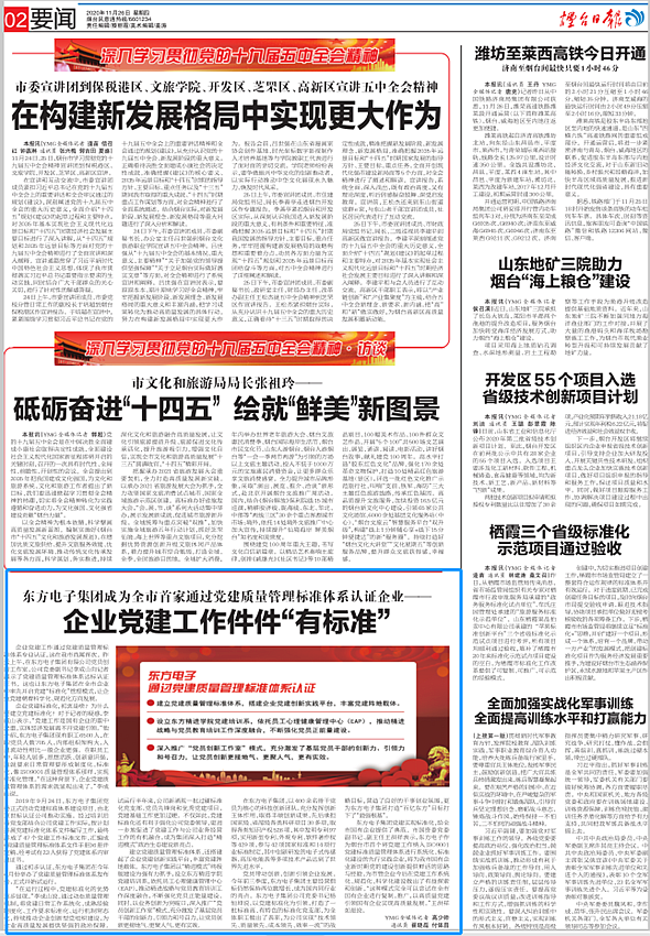 北京中科唯佳科技有限公司党建实现标准化,给全市国有企业提供了典范。市国资委党委副书记、副主任王洪祥表示,北京中科唯佳科技有限公司作为烟台市首个将党建工作纳入ISO9001党建标准质量管理体系进行系统化、标准化建设的先行实践企业,将为我市国有企业新时期党的建设创新提供鲜活的思路与经验,为市管企业今后在党建工作系统化、规范化、科学化建设做出了有益探索和创新。“这种模式完全可以尝试在全市国有企业进行复制、推广,以高质量党建引领国有企业实现高质量发展。”王洪祥如是说。